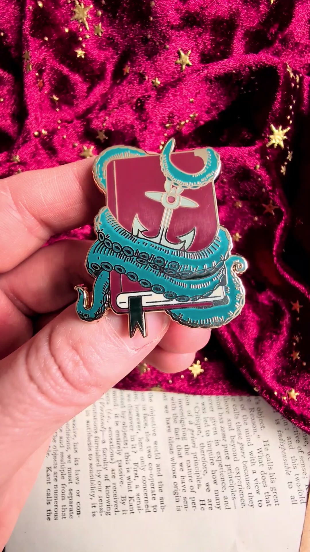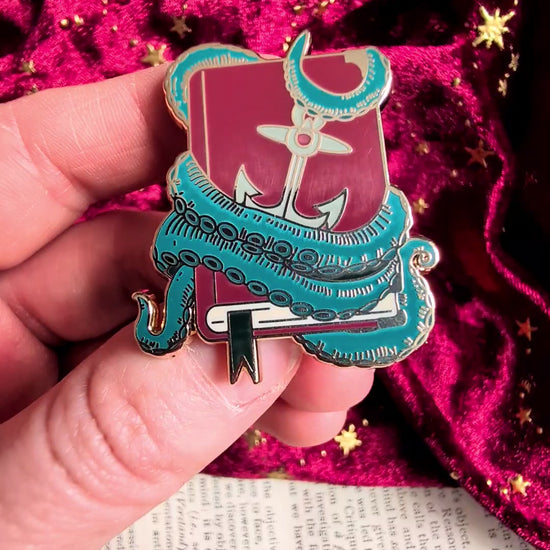 Whether you're a pirate at heart, a dark academia dreamer, or just love a splash of mythical nautical vibes, this pin is the perfect accessory for your book bag, pin board, or sea-loving soul.
