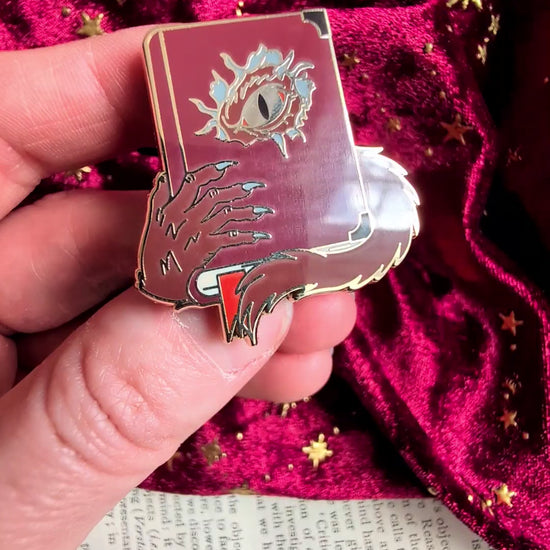 Beware the full moon… 🌙 This Werewolf’s Curse Hard Enamel Pin features a crimson book wrapped in a wild wolf’s tail, gripped by clawed hands, with a feral eye burning from the cover. It’s a hauntingly bold design for fans of werewolf lore, gothic fantasy, and supernatural stories.